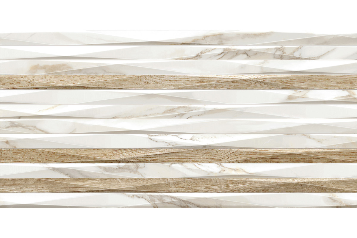 Настенная плитка Alma Ceramica TWU2550EPH24 Euphoria 24.9x50 белая / серая глянцевая / рельефная под мрамор / полосы