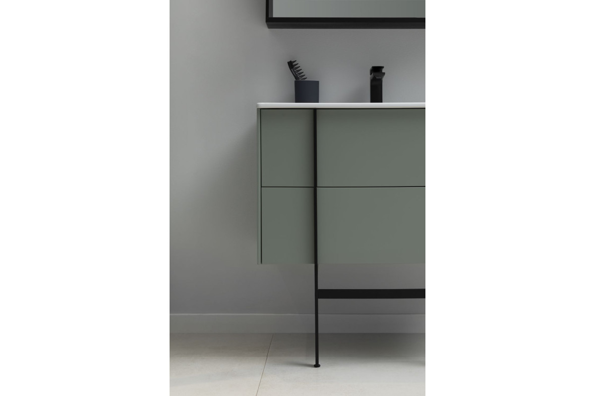 Изюминкой коллекции являются стильные и оригинальные металлические ручки, которые образуют единую линию с ножками тумбы и пенала. Ручки, опоры и зеркала коллекции REALITY выполнены из металла в цветах: черный браш или латунь браш.