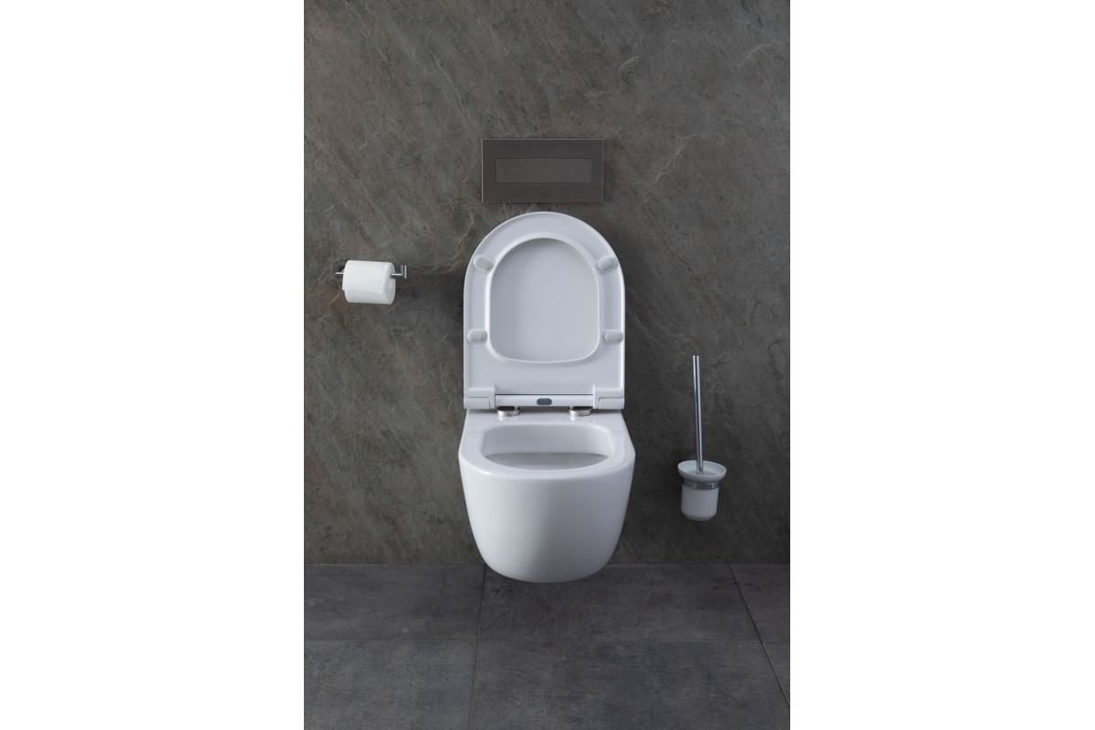 Унитаз с инсталляцией Allen Brau Priority — универсальный вариант с подвесной чашей без ободка и каскадным смывающим потоком. Монтируется конструкция прямо в стену, избавляя комнату от визуального мусора в виде коммуникаций. Сам унитаз занимает небольшое пространство у стены вместе с лаконичной кнопкой для пуска воды. В комплекте также имеется удобная крышка-сиденье в цвет изделию из дюропласта с функцией плавного опускания, то есть с микролифтом. Модель хорошо сочетается с любым цветом ванной комнаты, в том числе и с разной фактурой под древесину или камень. Что касается интерьера, то конструкция отлично смотрится в футуристических и минималистических направлениях.